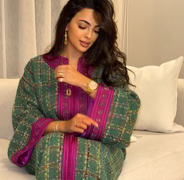 le caftan royal marocain incarne l'élégance intemporelle et l'artisanat traditionnel raffiné. Il est le fruit d'un travail acharné et d'une passion qui se traduit dans chaque coup de fil.